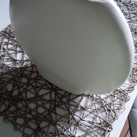 Kaunis rottinkimaljakko, korkeus n. 30 cm ja sivu 9 cm.