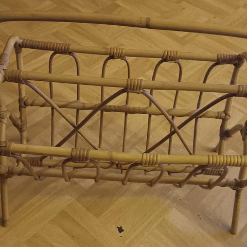 Rottinkinen lehtiteline. Korkeus 53 cm. Leveys 47 cm.