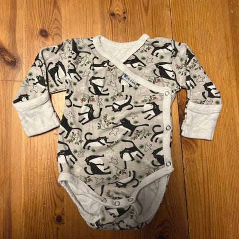 Pinkki suomalainen Jutta kietaisubody (nepparit) koossa 56-62. Todella kätevä, sillä hihat saa käännettyä pieneltä käsien suojaksi. Käytetty, perussiisti ja ehjä
