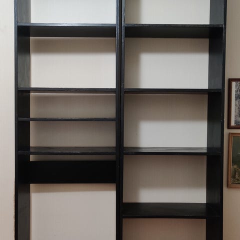 Nyt on vain pakko myydä pois ainakin yksi näistä, joten kympillä saat sen "huonoimman" se vaatii yhden kannakkeen ja se takana oleva seinä pitää naulaa hyllyyn kiinni. Mä en jaksa enään sitä kuinka toi yksi on jatkuvasti tiellä täällä asunnossani