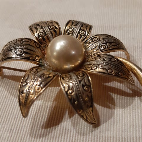 Kaunis singaporelainen vintage orkidea- koru, jota voi käyttää rintaneulana tai riipuksena.