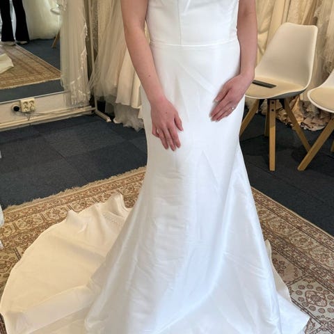Mekko pesetetty ammattiliikkeessä, sisähelmassa pieni vaalea tahra, joka ei näy.