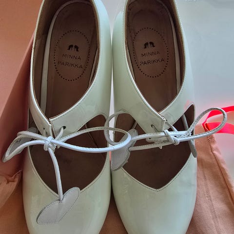 Kerran käytetyt juhlakengät. Väri luonnonvalkoinen. Mukavat jalassa. Koko 40.