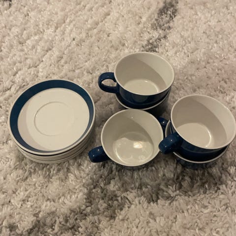 Yhdessä lautasessa halkeama, kuvassa näkyy.