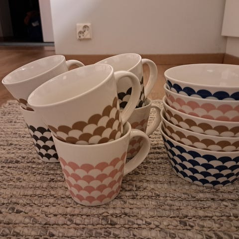 Käyttämättömät 3,7 dl emalimukit. Konepesun kestävät. Ei mikroon.