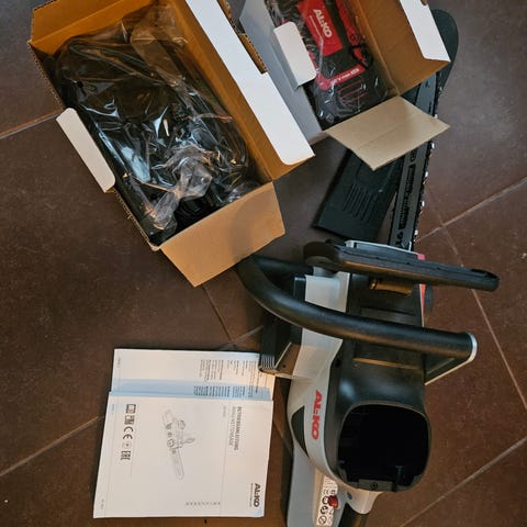 Myydään kuvan käyttämätön akkusaha runkoversiona, mukaan kuvan mukaiset tarvikkeet (itse kone, laippa, laipansuoja, ketju)