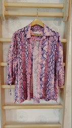 Uuden veroinen InWearin paitapusero, koko 42. Ilmava ja hengittävä viskoosi. Hihat saa rypytettyä nauhojen avulla lyhyemmäksi. Ilman rypystystä ovat vajaamittaiset. Tosi kaunis vaaleanpunainen "käärme"kuosi. Selässä liikkumatilaa antava laskos.