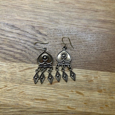 Pronssiset Kalevala korun Herttakehti korvikset.