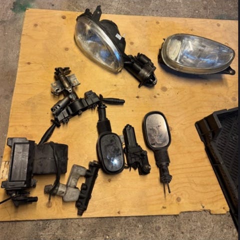 Moottori ja vaihdelaatikko myyty sekä muuta osaa.