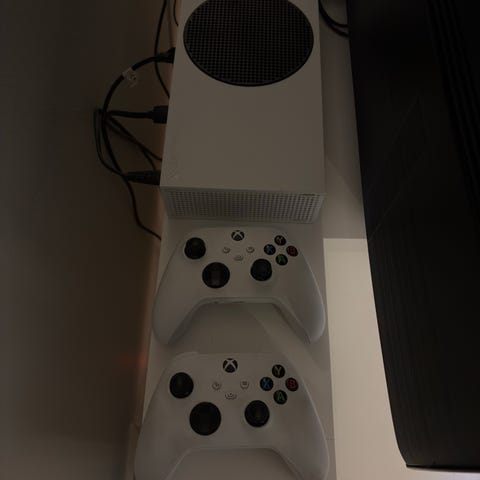 Series S-konsoli, ohjain, virtajohto ja hdmi johto.