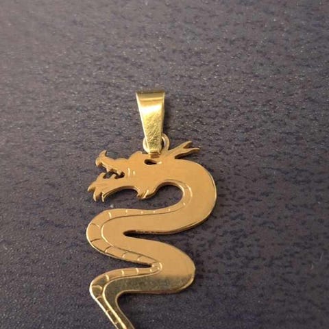 Käyttämätön kultainen lohikäärme-aiheinen riipus.