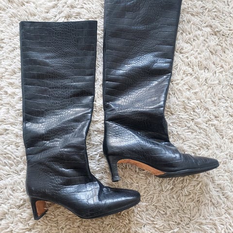 Myyn Rebecca Minkoffin saappaat koossa 37. Kokokomerkintä USA:n koko, 7 M. Käytetty kahdesti, erinomainen kunto. Nahkapohja johon laitettu suutarilla päkiän kohdalle suojaksi pohjallinen (yhdessä kuvassa näkyy).