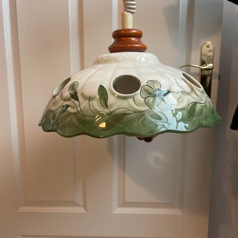 Kukallinen keraaminen lamppu, läpimitta 36cm, kaunis vaikka keittiöön tai mökille