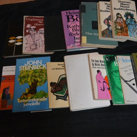 Myydään seuraavat teokset 5€ kappalehintaan tai tarjousten perusteella. Kaikki kuvan kirjat eivät ole saatavilla tällä hetkellä, mutta päivittelen listaa, jos voin myydä ne tai joitain muita kirjoja. Kirjojen painovuosi vaihtelee, mutta ikäänsä nähden vanhemmatkin teokset ovat nätissä kunnossa.