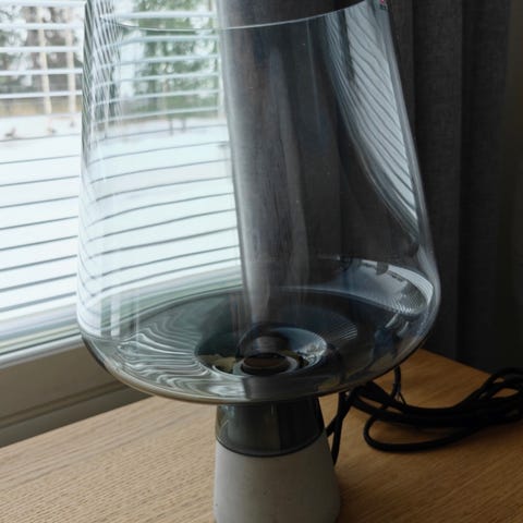 Upea Iittalan Leimu valaisin kuparin värisenä ja betonijalalla, 380x250 mm. Suunnittelija Magnus Pettersen. Alkuperäinen hinta 870 €.