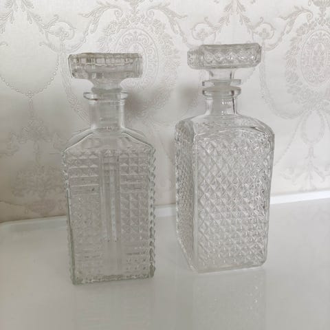 Vanha tyhjä ruskea lasinen viski pullo, viskipullo, whisky 5 e
