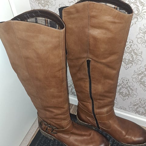 Tästä testikävellyt, uudet, tummanruskeat nahkasaappaat vuorella, hintalappukin vielä paikallaan. Koko 42. Nämä pistät jalkaan kylille lähtiessä niin ei palele varpaita. Hinta sisältää postituksen.
