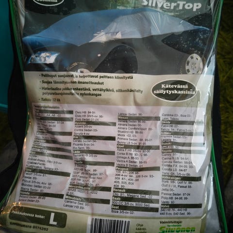 Takaoven suoja, peräosan katos. Pakettiautoissa käytännöllinen jos sateella tavaraa haettava/voi ovia pitää auki ja tavarat ja auto pysyy kuivana. Myös matkailuautoon hyvä lisä jos taka ovet haluaa pitää avoinna, ilma vaihtuu ja estää sateen tulemisen autoon.