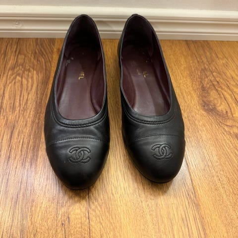 Aidot, uudenveroiset Chanelin mustat balleriinat. 0stettu Vestiairelta, siellä aitoutettu tuote.