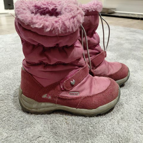 Yhdellä lapsella käytetty, villasukan kanssa parempi 27 kokoiselle jalalle. Hyvä käytetty kunto, jotain käytönmerkkejä löytyy mutta ehjät ja siistit.