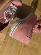 Myydään Vansin vaaleanpunaiset kangaskengät. Käytetty kunto. Vasemman kengän kielen tikkaus on irronnut toisesta reunasta ja samassa kohtaa näkyy tummentumaa. Oikean kengät kantapäässä kulumaa kankaassa. Näkyvät kuvissa. Ei ole pesty, jää ostajalle.