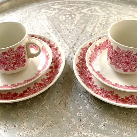 Myynnissä Arabian tuotannossa 1969-1974 ollutta Leena sarjaa. Suunnittelija Raija Uosukainen. Myydään settinä. Nouto/postitus.