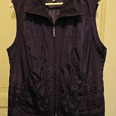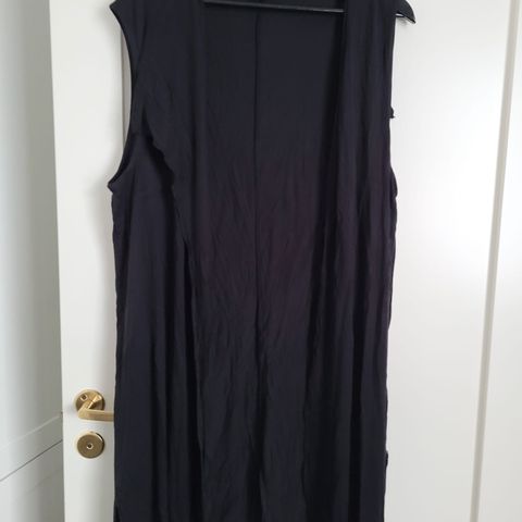 Villakangas liivi ,musta (made in italy)pituus olka-helma 100,5cm.edessä reilunkokoiset taskut.takana halkio.ei vuorta.edessä nyöri kiinnitys.koko 46.