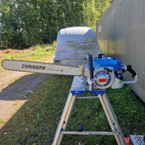 Akkuketjusaha Oregon-laipalla ja -ketjulla.