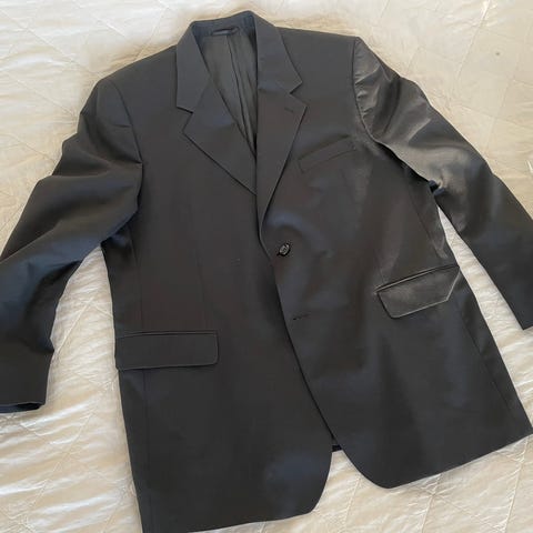 Musta puku isolle miehelle, koko C62, laadukas Buzo-merkkinen, materiaali 60% villaa, 38% polyesteria ja 2% elastaania.