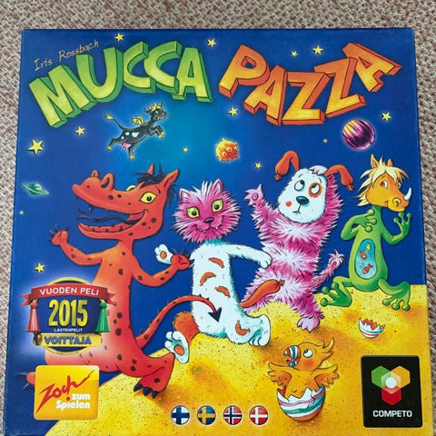 Zoch Mucca Pazza lautapeli. Sopii 4+ ikäisille, 2-4 pelaajalle. Peliaika noin 15-25 minuuttia. Mukana värikkäitä pelilaattoja ja pelilauta. Hauska ja viihdyttävä peli perheille ja ystäville.