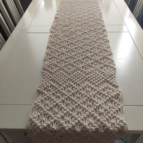 Luonnonvalkoinen makramee kaitaliina, lankana Moppari kierrenaru 3mm,