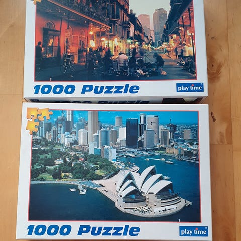 Molemmat uusia. Toisessa vielä muovitkin päällä ja molempien palat alkuperäisissä pusseissa, jotka avaamatta. Yksi parhaista palapeli merkeistä ja tehty Euroopassa.