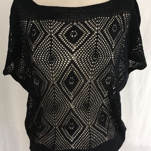 Uusi pitkä neulepaita tai minimekko. Hieman kiiltävä pinta. Nyöritys pääntiessä. Koko S