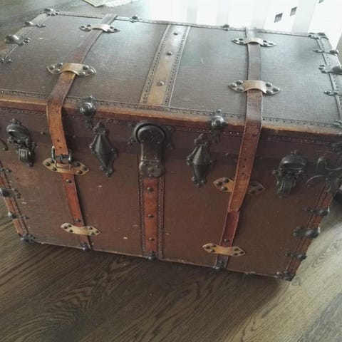 Vanha Amerikan arkku, leveys/syvyys 90/54cm, korkeus 48cm. Vaikka sohvapöydäksi.