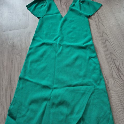Pastellinvihreä/mintunvihreän värinen mekko, koko 36/38. 100% polyesteri, 90% polyamidi ja 10% elastaani.