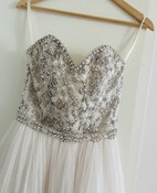 Myydään todella hyväkuntoinen hääpuku. Väri shampanja. Koko XS. Korsetti yläosa. Ei sisällä vannetta, mutta halutessaan vannehame mahtuu kauniisti alle. Vetoketju takana sekä napitus. Laahus pitkä ja laahuksessa narukahva, josta saa kiinni esim. kävellessä tai tanssiessa. Alkuperäinen pukupussi mukana. Huom! Vaatii käynnin pesulassa, laahuksessa sisäpuolella hieman pientä tahraa. Sovittamaan pääsee halutessaan, vain nouto.