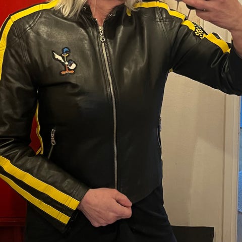 Siistit naisten nahkaiset ajohousut koko L sekä polvisuojat .