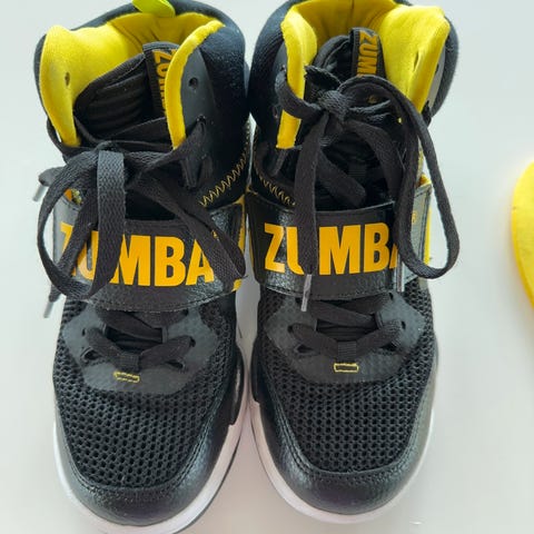 Vähän käytetty alkuperäiset Zumba korkeät kengät. Kunto - kuin uusi. Myös oranssi treenipaita tulee mukaan S/M-kokoinen.