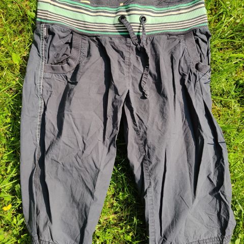 Pastellinvihreät/mintunvihreät caprihousut, koko 40. Materiaali 97% puuvillaa, 3% elastaania. Nukkaa on vyötärön kohdalla.