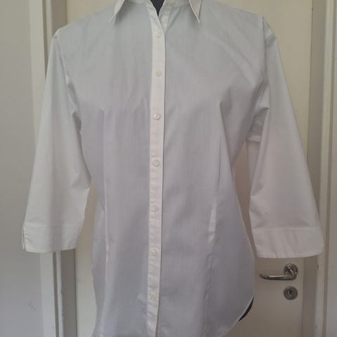 Valkoinen croptop kauluspaita / lyhyt t-paita Napit edessä. Edessä hailakka värjäymä josta lisäkuva.