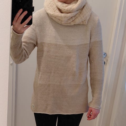 Ei kertaakaan ollut käytössä, mut oli pitkään kaapissa ja luultavasti säylytyksestä tuli aivan haalea tahra sauman kohdalle (kts viimeinen kuva).
