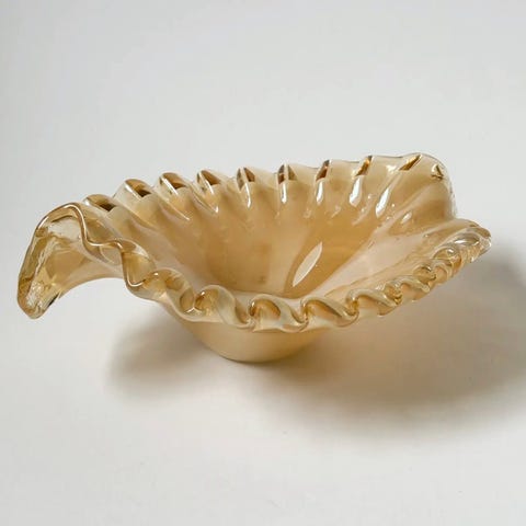 Tyylikäs boheemi lasikulho, koristeltu kelloilla.