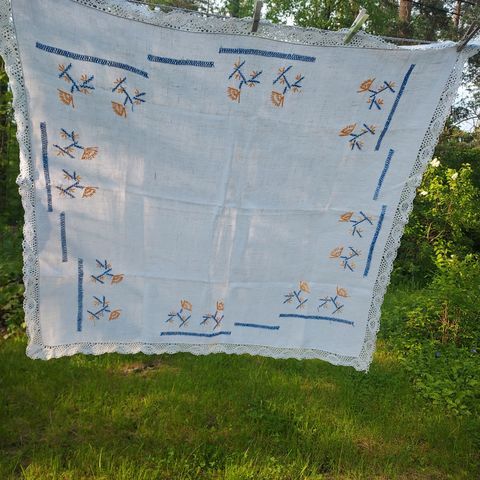 Vanha käsinkirjottu pöytäliina 63cm. x 63cm.