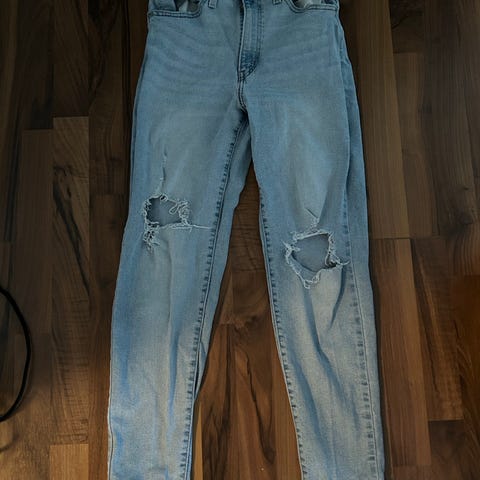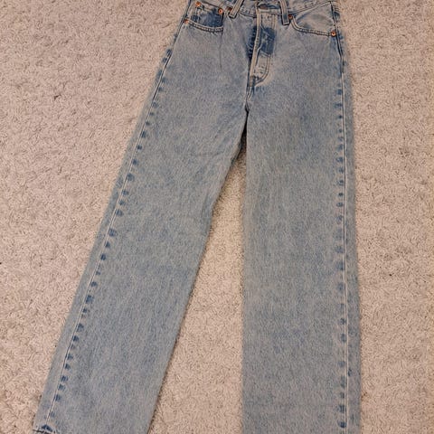 Levi's pusakka/bomber-tyylinen farkkutakki, jossa pudotetut olkapäät ja resorit helmassa ja hihansuissa. Koko XS, mutta malli on oversize. Käytetty jonkun verran, mutta edelleen hyvässä kunnossa. Kauluksen taitteessa sisäpuolella pientä kulumaa.