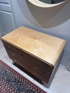 Hyväkuntoinen 50-luvun koivuinen funkkis lipasto. Varustettu kahdella isolla laatikolla ja kahdella pienemmällä lukittavalla laatikolla (avain löytyy)
