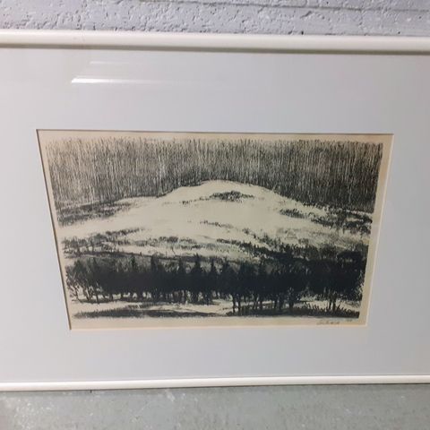 Aukusti Tuhka tait.vedos mittoja kehysten päältä korkeus n.51cm leveys n.67,5cm kuva-ala korkeus n.34,5cm leveys n.46cm, vanhat kehykset + kosteusjälkiä