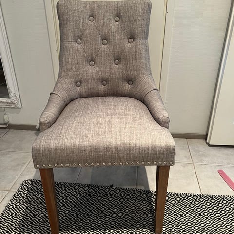 Uudenveroinen tuoli. Ostettu Askosta v. 2013. On ollut käytössä ainoastaan laskostetun päiväpeitteen ”telineenä”. Istuinkorkeus 46 cm. Tuolin selkänoja on ihan vaakasuora, vaikka kuva vääristääkin sen vinoksi. Vain nouto.