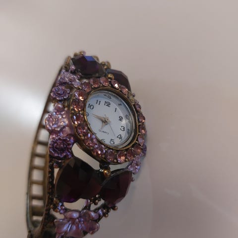 Naisten rannekello musta kuminen ranneke ja kullan väriset tehosteet. Kaunis ja hyvässä kunnossa. Patteri juuri vaihdettu.