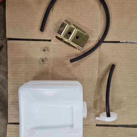 Sisältää säiliön, säiliön korkin, säiliön kiinnikkeen, 1m letkun jäähdyttimeltä säiliölle sekä klemmarit letkulle.