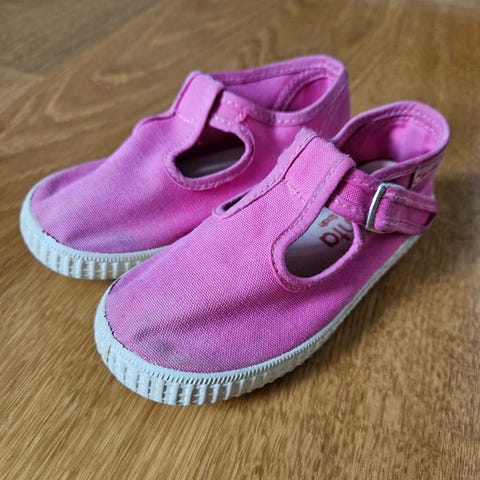 Lapsen Cienta kangaskengät koossa 25. Kiva hopeahile väri. Siisti käytetty kunto, kankaat ok, muuten pientä kulumaa ja toinen pohjallinen hukassa.